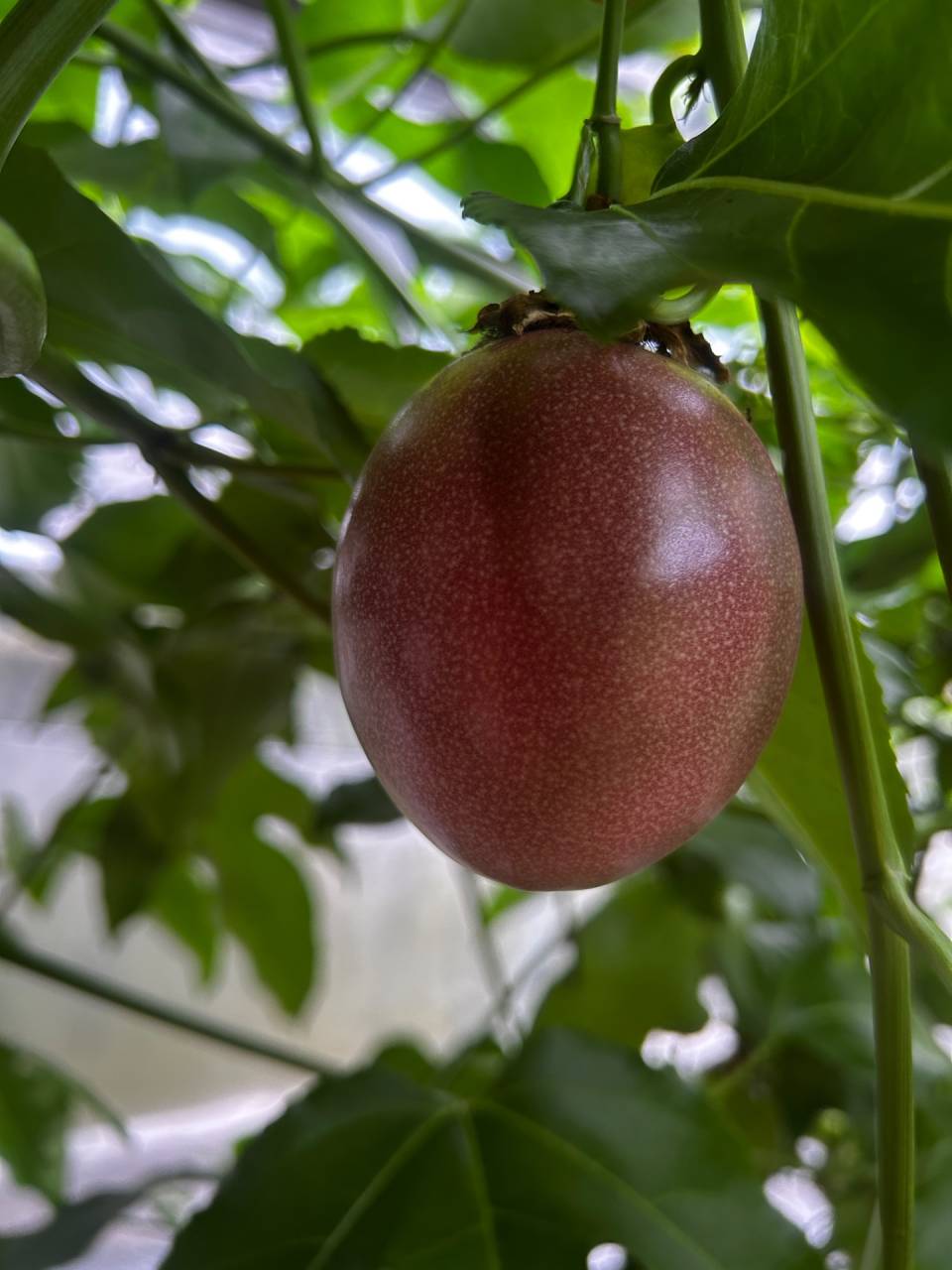 パッションフルーツもいつの間にか鈴なり&色づき始めて…🟣