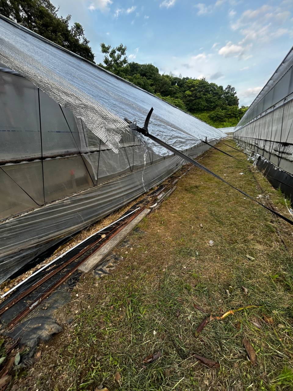 ハウス周辺の 草刈りや 遮光ネットを張ったり、