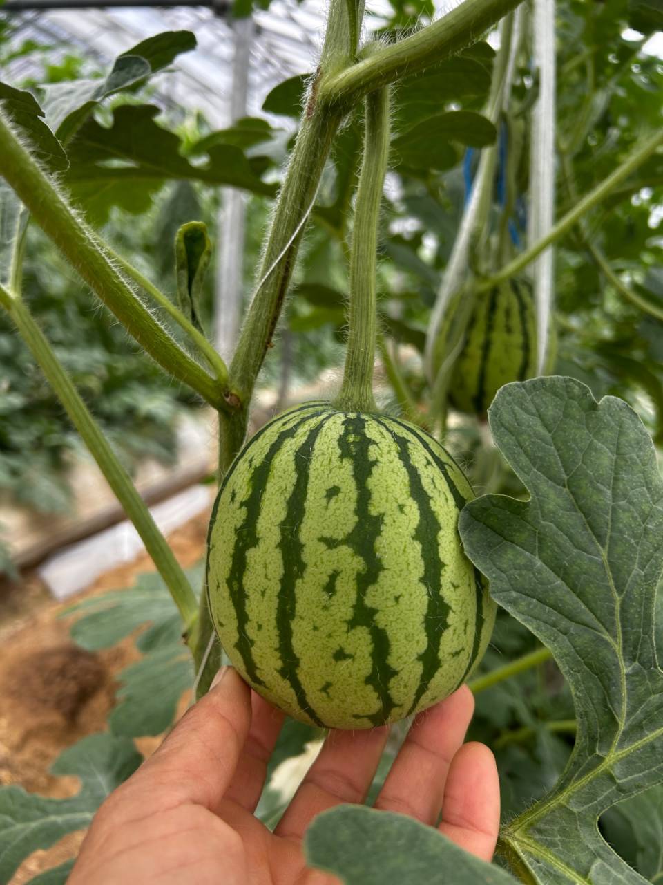 パイプハウスの 春アンテナスイカ🍉